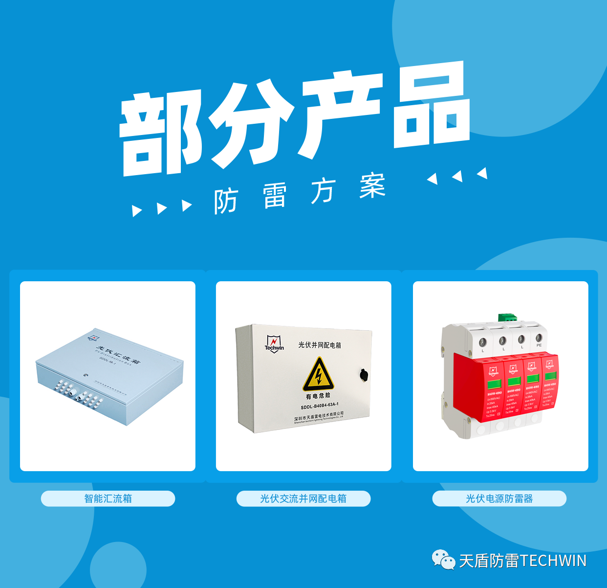 该项目的光伏防雷器选用qy球友会(千亿)官网雷电的Techwin品牌,型号规格均顺利获得甲方确认和认可,该设备损坏后,损坏的浪涌保护器能够可靠地与电网脱离,并将防雷器动作信号上传至监控后台,内置防雷热脱扣保护装置,同时,配置外置的浪涌保护器短路保护电路,外置短路保护电路的短路电流分断能力大于40kA。
