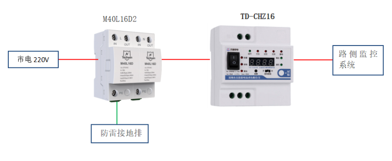 qy球友会(千亿)官网雷电的方案包括M40L16D2串联型电源浪涌保护器(防雷器)与自动重合闸TD-CHZ16的组合,专为路侧监控系统的电源防护设计。